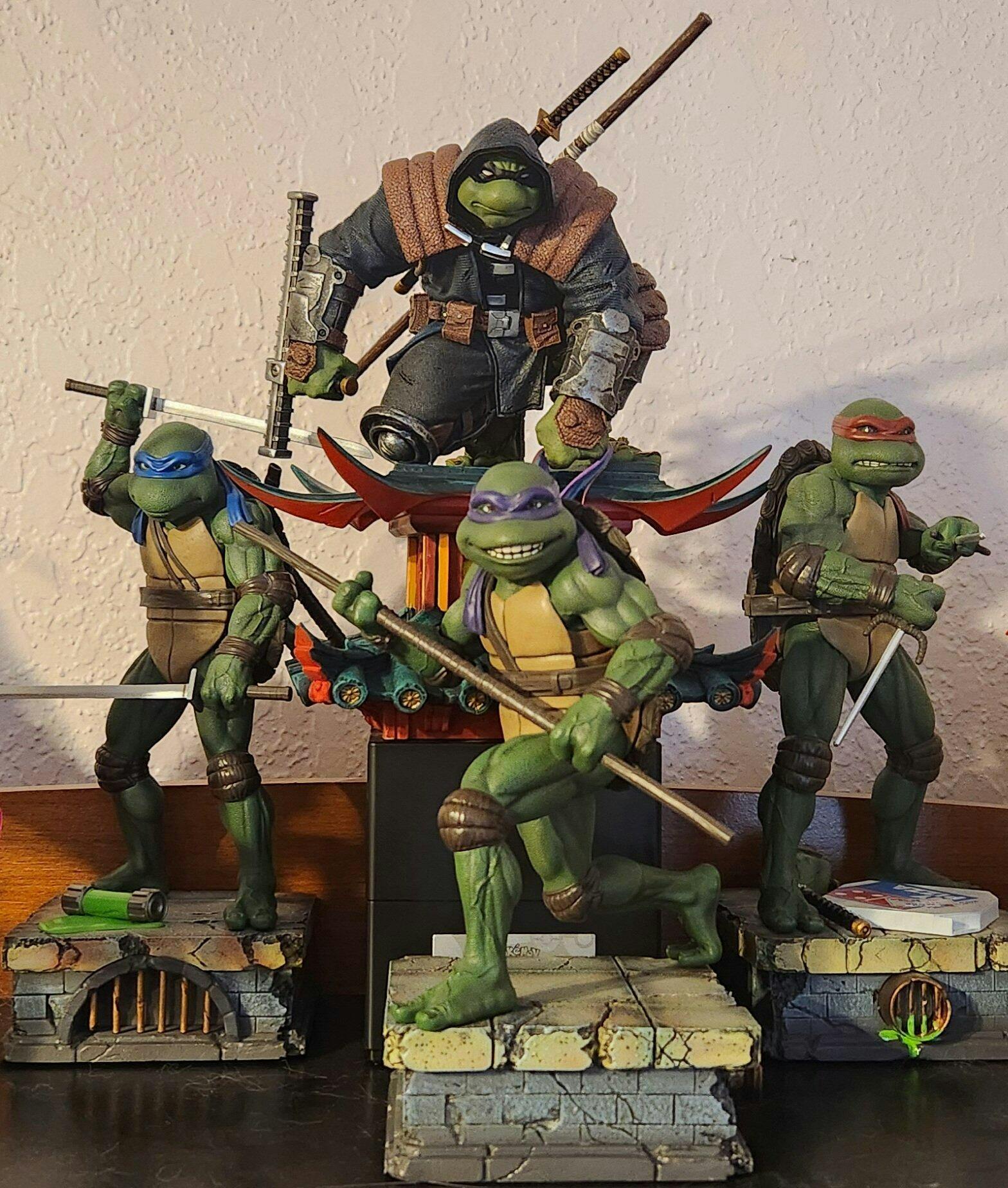 In a dystopian future where tragedy has struck the Turtle family, the last surviving Ninja Turtle takes up the mantle of vengeance. Iron Studios presents the "The Last Ronin – Teenage Mutant Ninja Turtles – Art Scale 1/10", capturing the lone warrior in a dynamic battle-ready pose, with his iconic weapon and detailed battle-worn armor, reflecting the gritty, darker storyline from the comic series.
